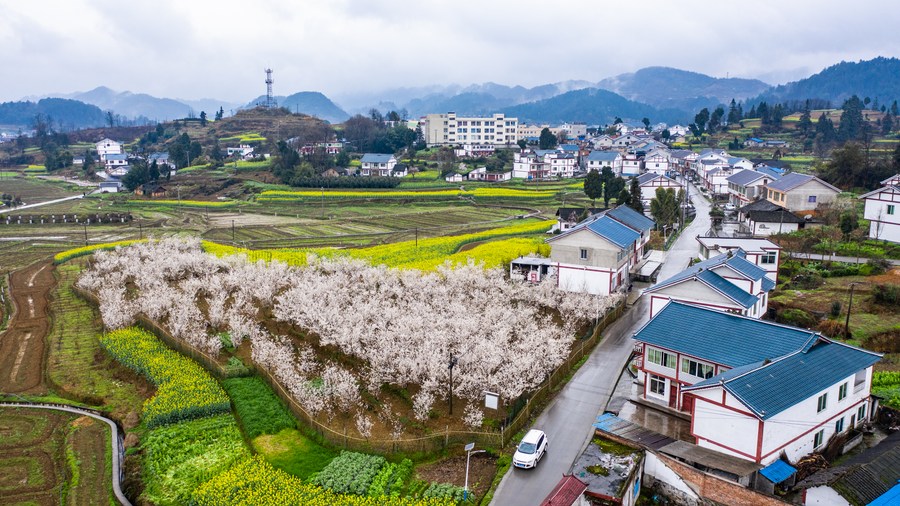Aerial photo taken on Feb. 28, 2020 shows the view of Huamao Village of Fengxiang Township in Bozhou District of Zunyi City, southwest China’s Guizhou Province. (Photo/Xinhua)