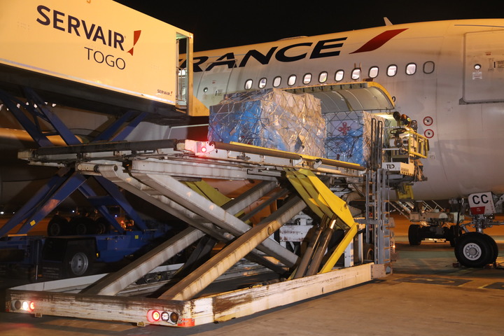 A batch of Sinovac COVID-19 vaccine donated by China is seen at the Gnassingbe Eyadema International Airport in Lome, Togo, Aug. 20, 2021. (Photo/Xinhua)