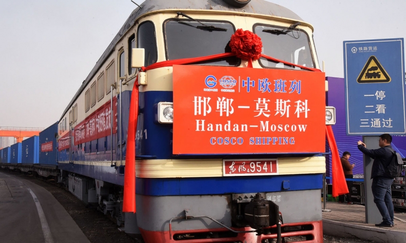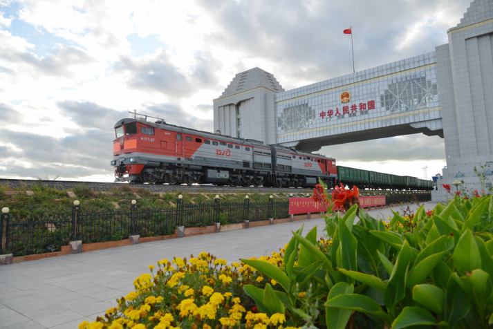 A Russian cargo train passes through the border gate in Manzhouli, a border city with Russia, north China’s Inner Mongolia Autonomous Region, on September 4, 2018 (XINHUA)