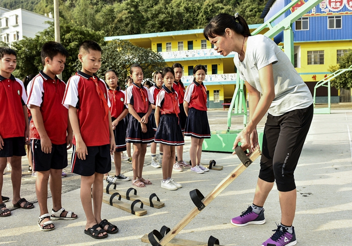 Primary school students in Hechi, Guangxi Zhuang Autonomous Region in south China, participate in a game on September 26(XINHUA)