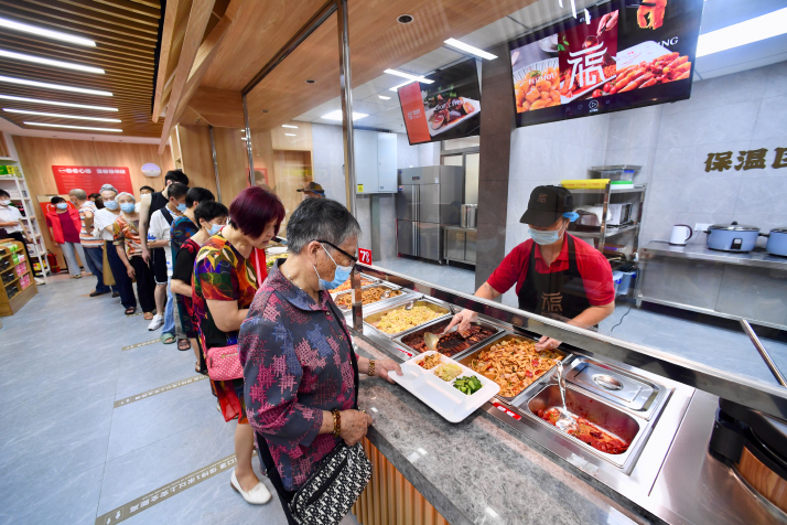 The community has opened a canteen where older adults can enjoy affordable meals in a clean environment. The canteen also offers delivery services during bad weather or for those with limited mobility. Seniors aged 60 to 79 are charged 10 yuan ($1.4) per meal per person and those 80 and above 8 yuan ($1.12), while centenarians dine for free.