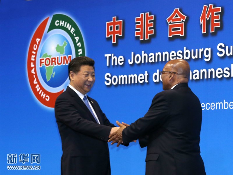 Δ?President Xi Jinping delivers a speech at the opening ceremony of the 6th Forum on China Africa Cooperation, Johannesburg, in December 2015. It was South African President Jacob Zuma greeting Xi. (Photo / Xinhua)