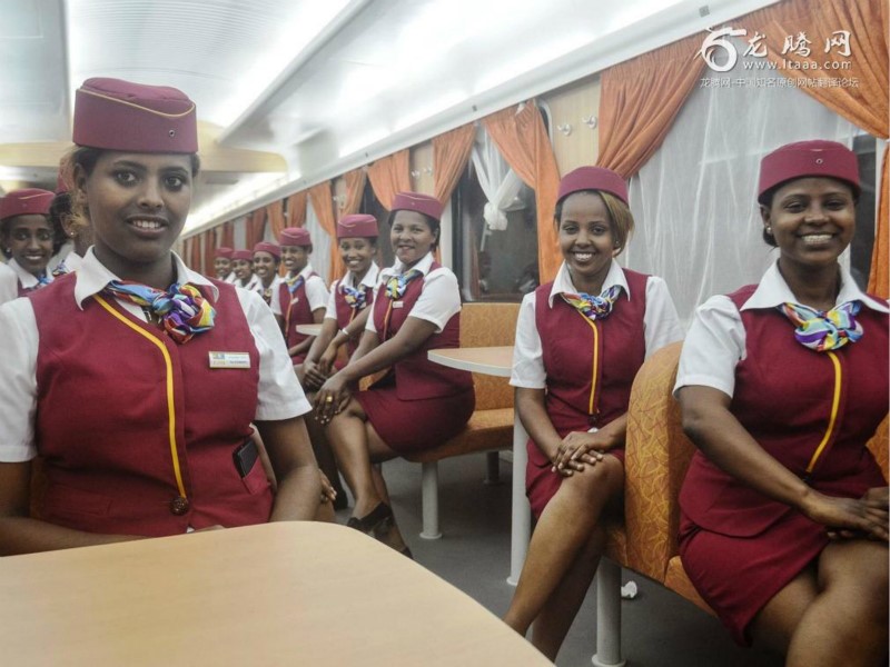 Δ Stewardesses of Addis Ababa-Djibouti Railway pose for pictures after the arrival of the first commercial train from Addis Ababa at a platform at Nagad railway station in Djibouti on January 3, 2018.