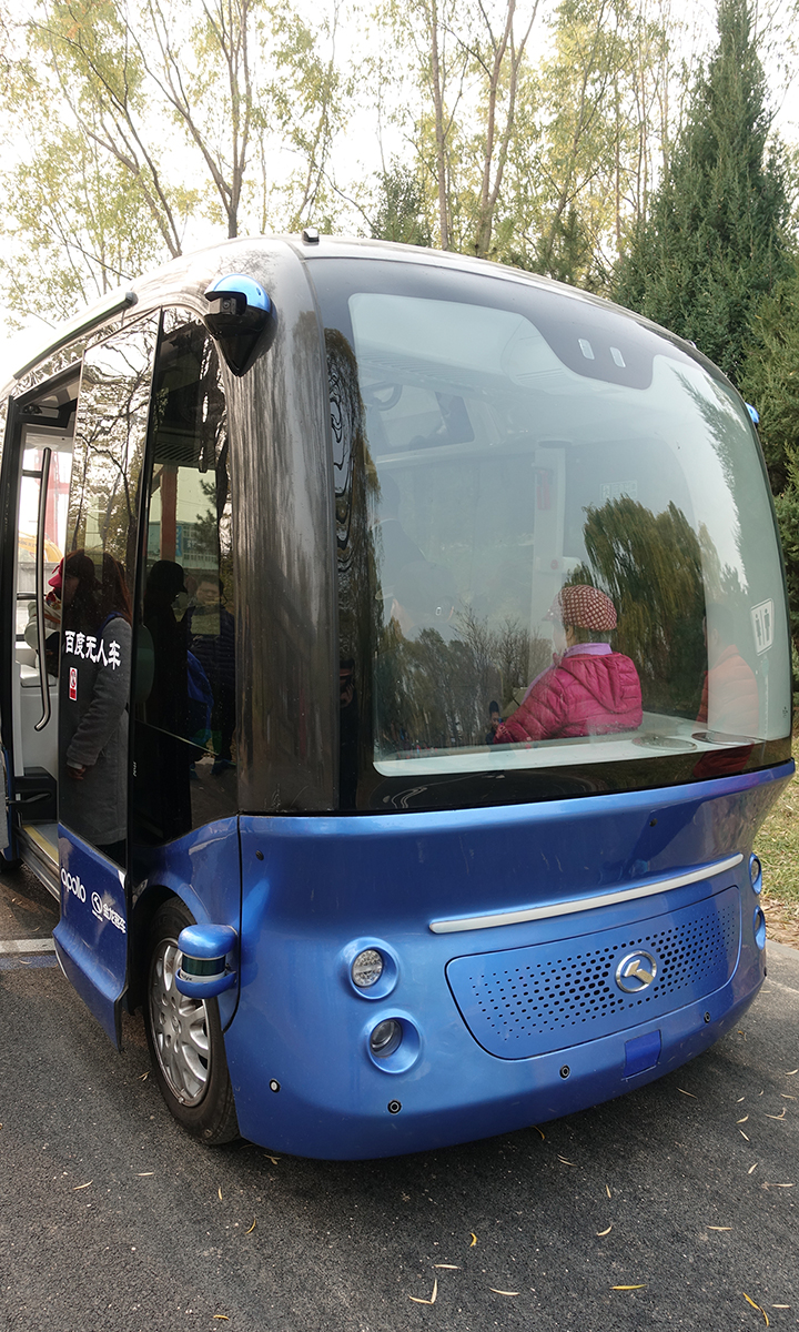 For those who fancy a more relaxing view of the park, Baidu’s ‘Apolong’ autonomous bus offers a warmer way of getting around. With no driver, steering wheel or brake pedal to control the seven-seater bus, the vehicle quietly glides round the park, missing the many pedestrians who crowd round it to try and get a picture.