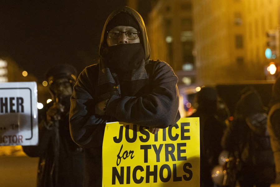 A man participates in a protest against police brutality in Washington, D.C., the United States, Jan. 27, 2023. (Photo/Xinhua)