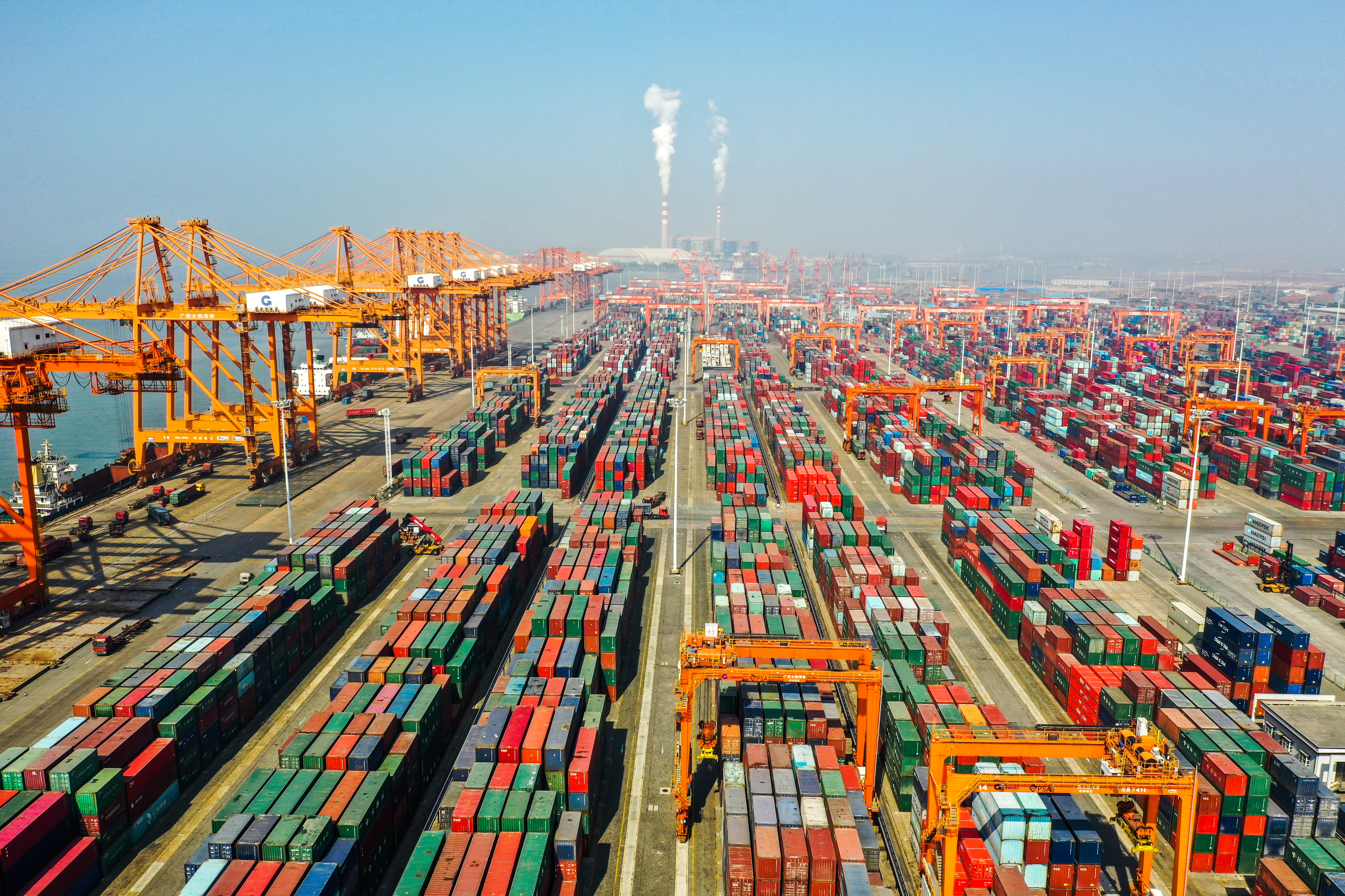 An aerial photo of the container terminal of Qinzhou Port in south China’s Guangxi Zhuang Autonomous Region, on Jan. 14, 2021. (Photo/Xinhua)