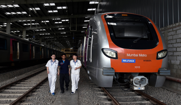 Chinese and Indian staff work in a depot of Metro Line 1 in Mumbai, India, on June 27, 2018 (XINHUA)
