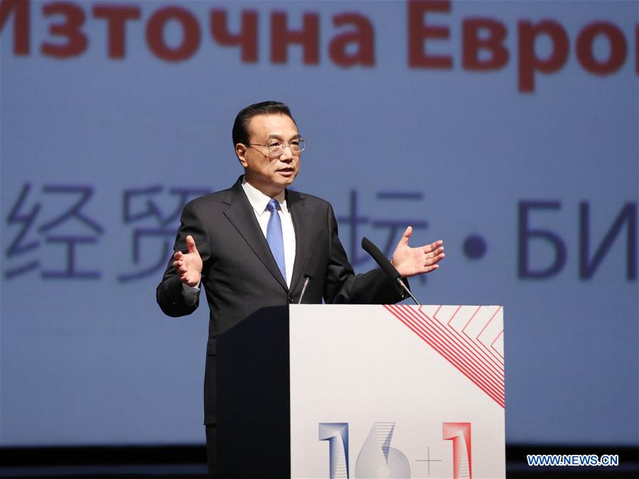 Δ Chinese Premier Li Keqiang addresses the opening ceremony of the 8th business forum between China and Central and Eastern European Countries (CEEC)