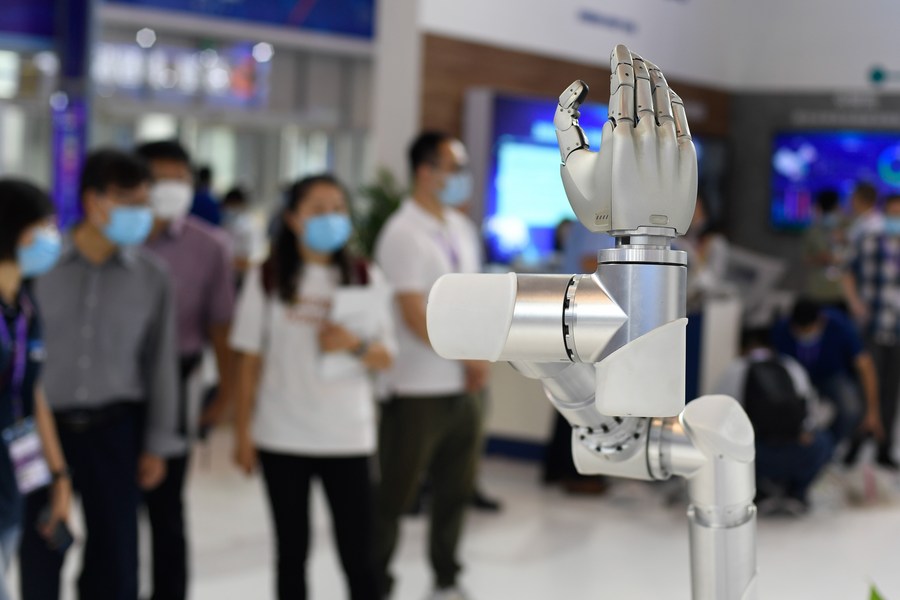 A robot system is displayed at the 10th China Smart City and Intelligent Economy Expo in Ningbo, east China’s Zhejiang Province, Sept. 11, 2020. (Photo/Xinhua)