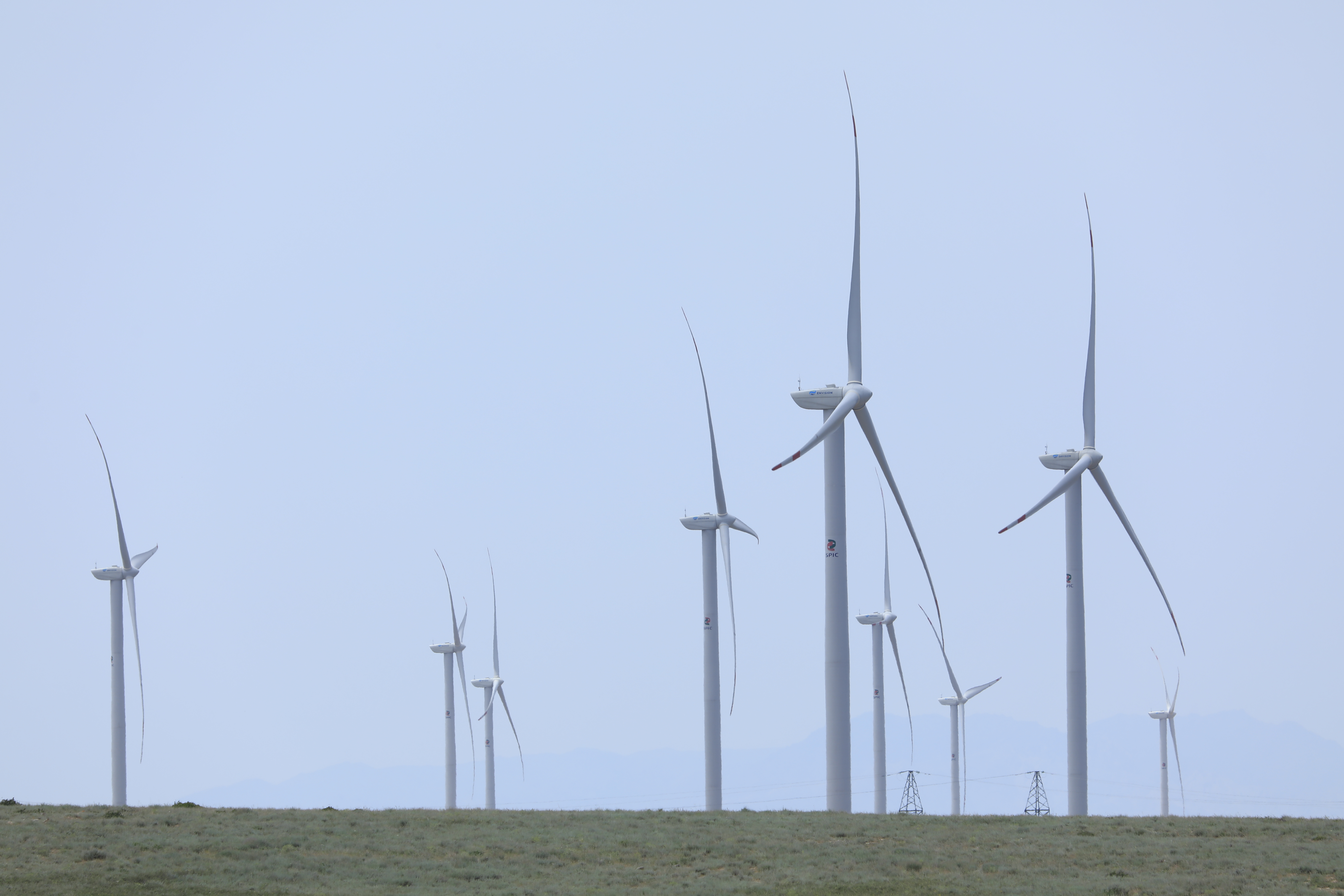 Wind turbines are seen on Central Asia’s largest wind farm built by a Chinese firm near the city of Zhanatas in the Zhambyl region, Kazakhstan, on May 24, 2021. (Photo/Xinhua)
