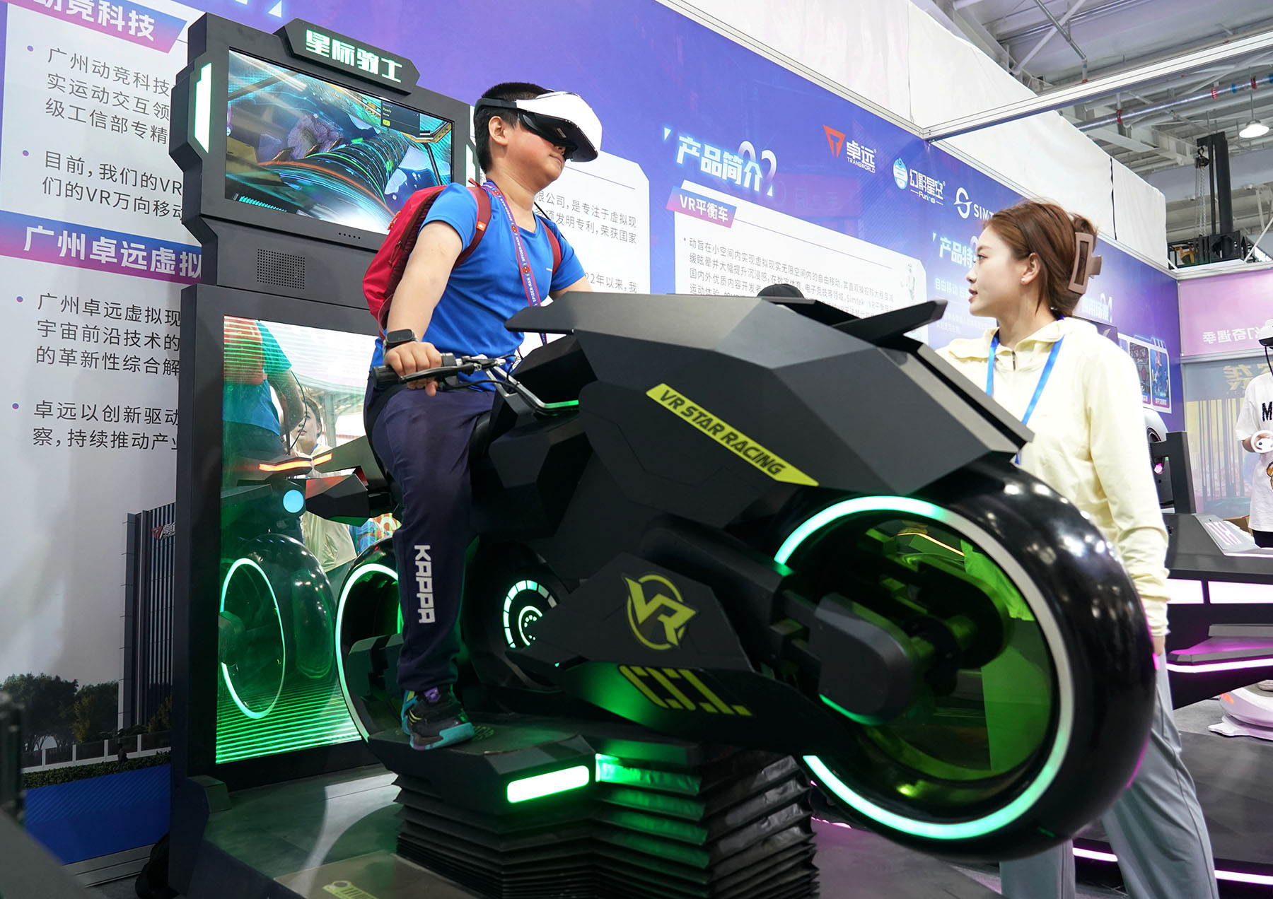 A young rider revs up at the 8th China Science Fiction Convention held in Beijing on Apr. 27, 2024. (Photo/Xinhua)