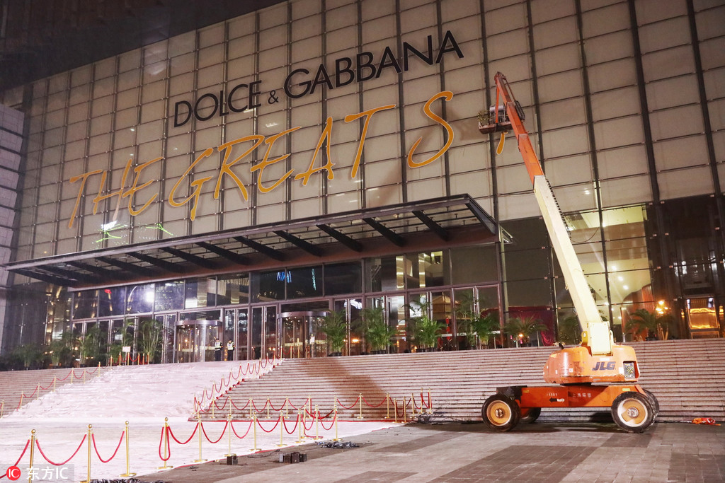 The sign of The Great Show by Dolce & Gabbana is removed from the exterior of Shanghai World Expo Exhibition & Convention Center in Shanghai, Nov 21. The show was cancelled hours before it was scheduled to get underway on Wednesday evening, after its latest “DG Loves China” online marketing ads came under fire for trivializing China’s centuries-old culture and depicting Chinese woman in a stereotypical and even racist way. [Photo/IC]