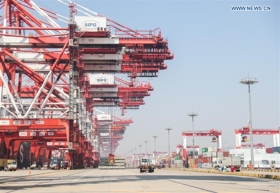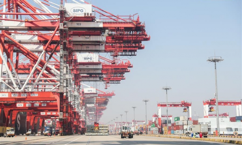 Containers are seen at the Yangshan Special Comprehensive Bonded Zone in Shanghai, east China, on March 18, 2020. (Photo/Xinhua)