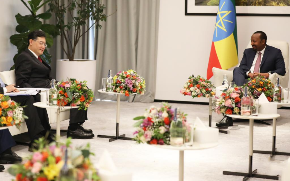 Ethiopian Prime Minister Abiy Ahmed (R) meets with Chinese Foreign Minister Qin Gang in Addis Ababa, Ethiopia, Jan. 10, 2023. (Photo/Xinhua)