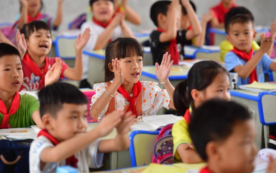 Photo taken on Jun. 2, 2020 shows pupils having class at the Beilin Primary School built with supports from Guangdong Province in the Rongshui Miao Autonomous County in south China’s Guangxi Zhuang Autonomous Region. (Photo/Xinhua)