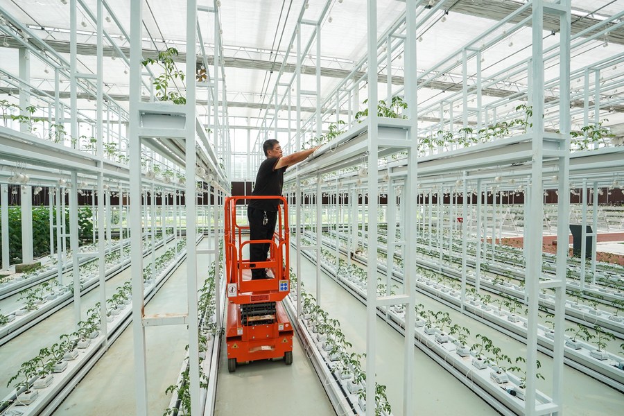 An employee works at a modern agricultural industrial park in Lianyungang City, east China’s Jiangsu Province, July 13, 2019. (Photo/Xinhua)