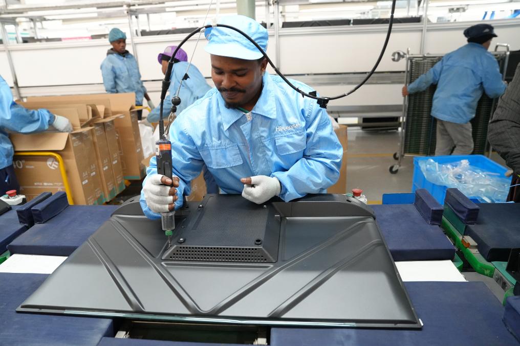 People work on the TV production line at Hisense South Africa Industrial Park in Cape Town, South Africa, Aug. 14, 2024. (Photo/Xinhua)