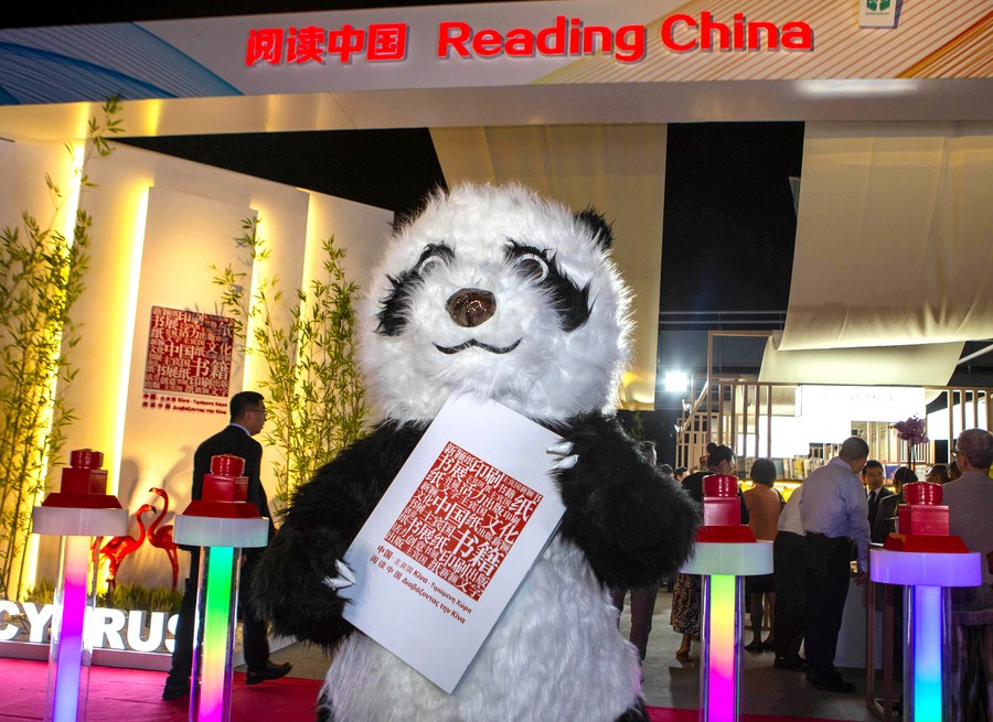 This photo taken on Oct. 6, 2023 shows the exhibition area of China at the 8th Nicosia Book Fest in Nicosia, Cyprus. (Photo/Xinhua)