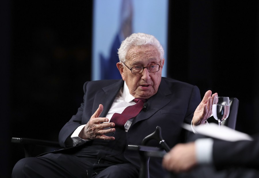 Former U.S. Secretary of State Henry Kissinger speaks at an event “Leaders Speak: Secretaries of State” in New York, the United States, on Dec. 5, 2016. (Photo/Xinhua)