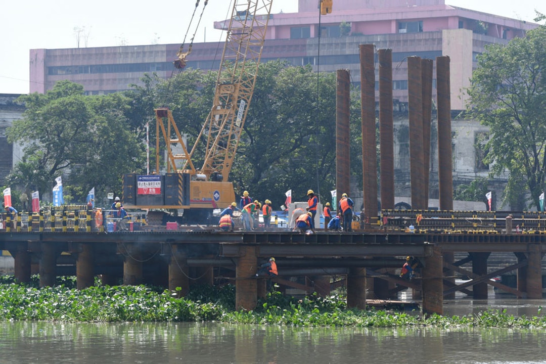 Construction crews at work on the Chinese-funded Binondo-Intramuros Bridge (commonly called the ‘Chinese Friendship Bridge’) in Manila, Dec. 4, 2018.