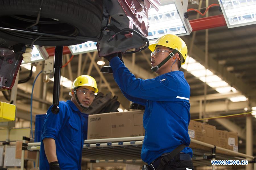 Employees work at a factory of China’s automaker Wuling Motors in Cikarang, Indonesia, on July 11, 2017. (Photo/Xinhua)