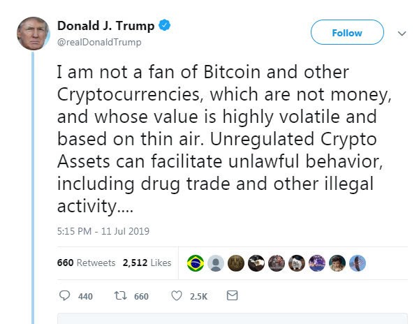 He also said that the Federal Reserve had set up a working group and was coordinating with the central banks of other countries. It is expected that the Financial Stability Oversight Council of the United States, consisting of regulatory bodies and responsible for identifying risks to financial systems, will also carry out an assessment on Libra.