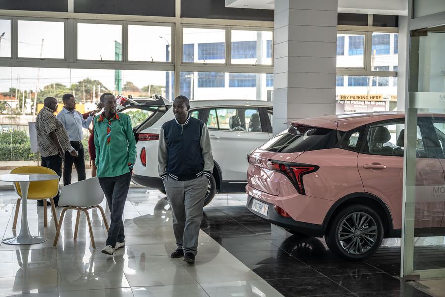 Customers visit a store of Chinese automotive brand Neta in Nairobi, Kenya, Jul. 5, 2024. (Photo/Xinhua)