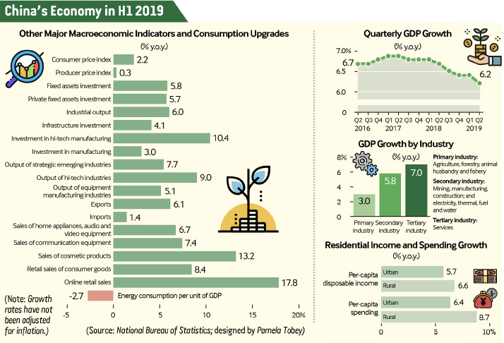 As it released data on China’s economic performance in the first half (H1) of 2019 on July 15, the National Bureau of Statistics (NBS) suggested that a solid foundation has been laid for the country to achieve its annual growth targets as the economy maintained steady, resilient development.