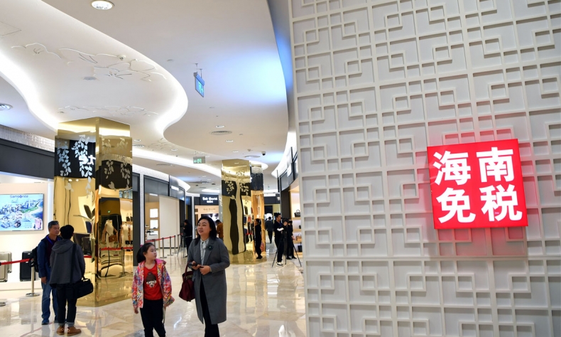 Shoppers queue to pay for their purchases at a duty-free store in Haikou, south China’s Hainan Province, on April 13 (XINHUA)