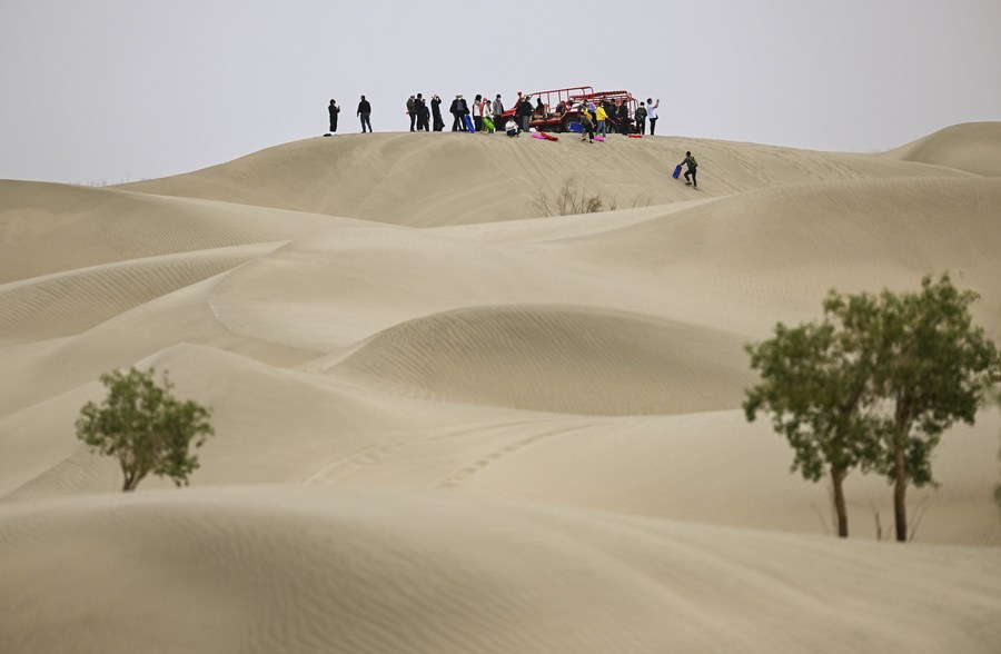Xinjiang has adopted effective measures to combat desertification. By constructing sand-fixing belts with drought-resistant plants such as the saxaul and the desert poplar, the region has curbed the spread of encroaching sands. As of November 2024, a 3,046-km green barrier had encircled the Taklimakan Desert, the world’s longest desert-edge defense system. In addition, a?436-km ecological corridor has been established along the Luntai-Minfeng Highway, which cuts across the Taklimakan Desert from north to south, stabilizing dunes and improving the local microclimate. Once threatened by shifting sands, the highway is now well protected. Water-saving irrigation techniques introduced in nearby agricultural areas have further reduced water consumption, ensuring limited resources are used efficiently.