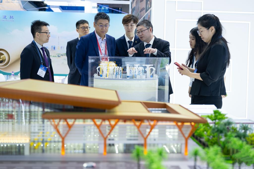 Participants visit the exhibition area of the 15th International Infrastructure Investment and Construction Forum (IIICF), which focuses on “Green Innovative Digital Connectivity,” in Macao, south China, Jun. 20, 2024. (Photo/Xinhua)