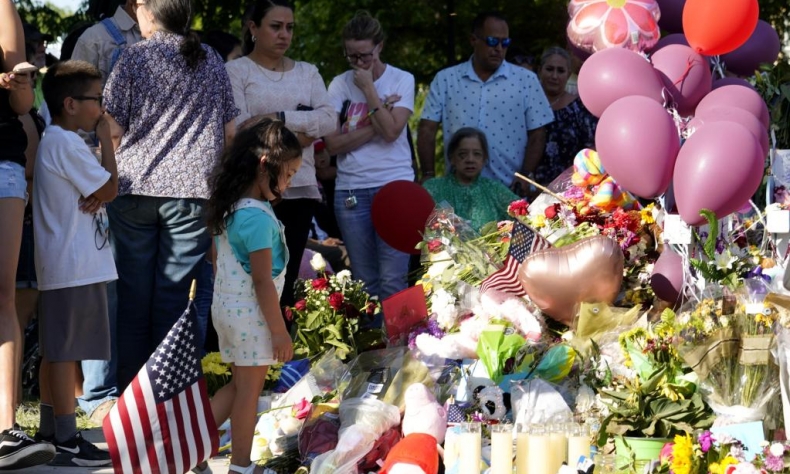 People mourn for victims of a school mass shooting at a square in Uvalde, Texas, the United States on May 24, 2023. (Photo/Xinhua)