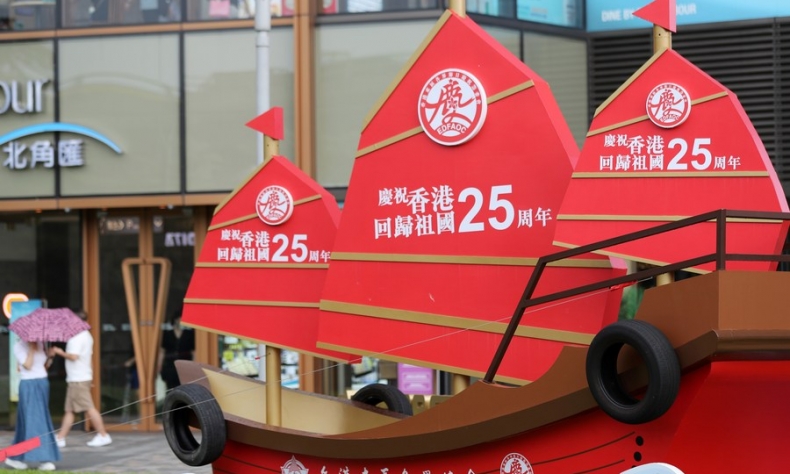 A flag-raising ceremony is held by the government of the Hong Kong Special Administrative Region to celebrate the 25th anniversary of Hong Kong’s return to the motherland, at the Golden Bauhinia Square in Hong Kong, south China, Jul. 1, 2022. (Photo/Xinhua)