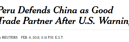 This statement is the Peruvian government’s first response since Tillerson’s warning, demonstrating that it does not share Washington’s concerns about China’s growing influence in the region.