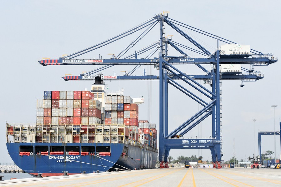 A container ship berths at the Lekki deep seaport in Lagos, Nigeria, Jan. 23, 2023. (Photo/Xinhua)