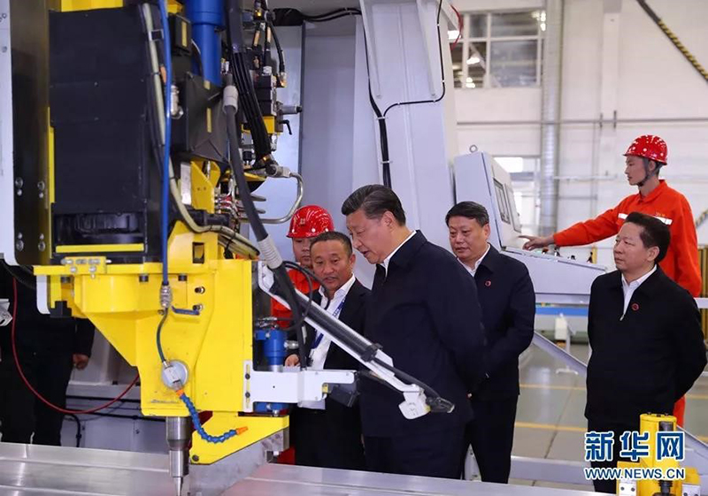 Δ Chinese President Xi Jinping visits a workshop of China Zhongwang Holdings Ltd on September 27, and inspects the enterprise’s development of transformation and upgrading.