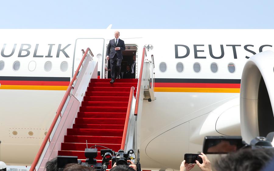 Federal Chancellor of Germany Olaf Scholz arrives in east China’s Shanghai, Apr. 15, 2024. (Photo/Xinhua)