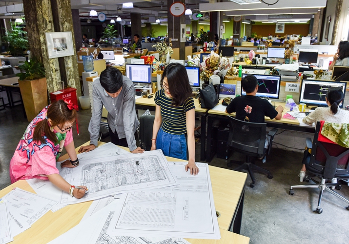 Designers work at a landscaping company in Shenzhen on June 20, 2018. (Photo/Xinhua)