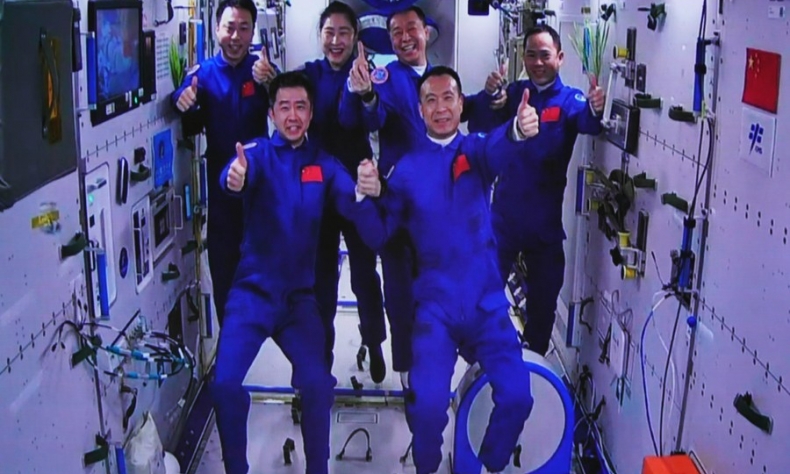 The meeting of the two crews was a historic gathering that brought actual in-orbit manpower to six for the first time ever for China.