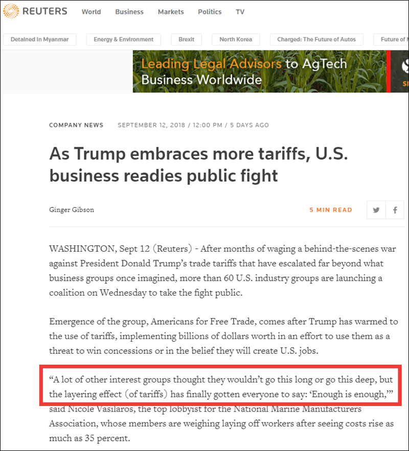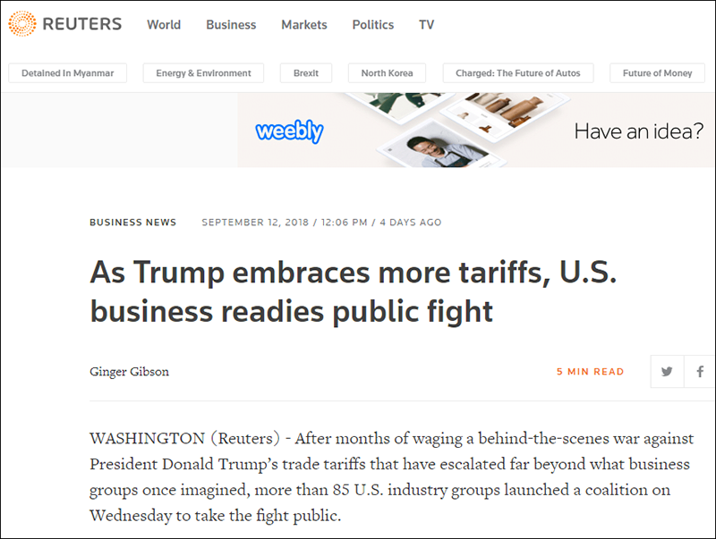 ▲ True enough, industry groups have decided to raise their voices louder against the tariffs. Reuters reported the launch of Americans for Free Trade, a coalition consisting of more than 85 industry groups.