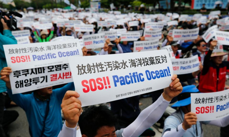Many Japanese people, including several non-profit organizations,?staged a rally in Iwaki city of Fukushima prefecture demanding Japan scrap its plans to release radioactive water into the sea on the Marine Day of Japan on July 17, 2023. In a May survey, 84 percent of South Korean?respondents opposed the discharge; South Korean fishermen held a maritime protest rally called “flower bier” which is used for a traditional ritual to carry coffins when people die,?to protest against Japan’s nuke wastewater discharge plan on July 21.