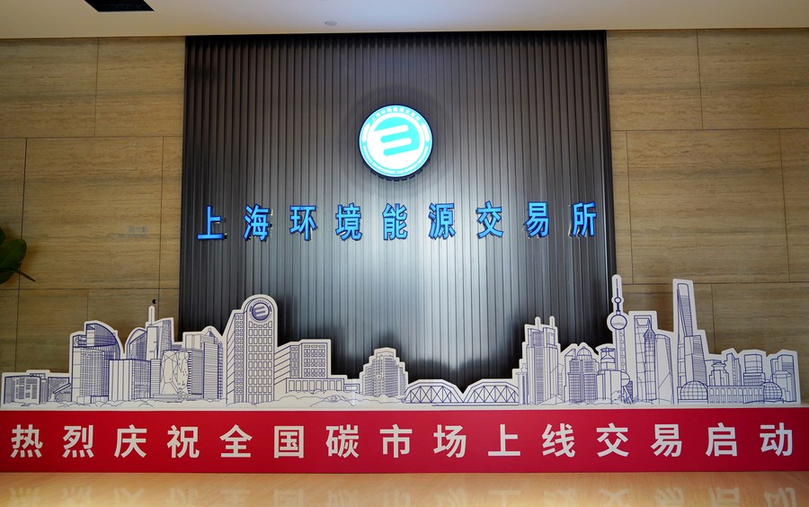 Photo taken on Jul. 16, 2021 shows a view of the Shanghai Environment and Energy Exchange in east China’s Shanghai. (Photo/Xinhua)