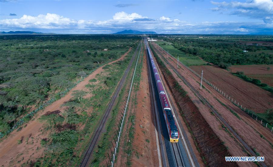 A train carries out a test run on Kenya’s Mombasa-Nairobi Standard Gauge Railway (SGR) on May 24, 2017. [Photo/Xinhua]