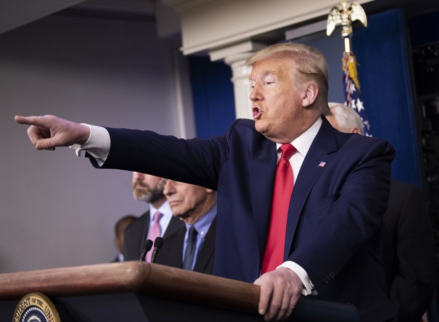 U.S. President Donald Trump attends a press conference at the White House in Washington D.C., the United States, on Feb. 29, 2020. (Photo/Xinhua)