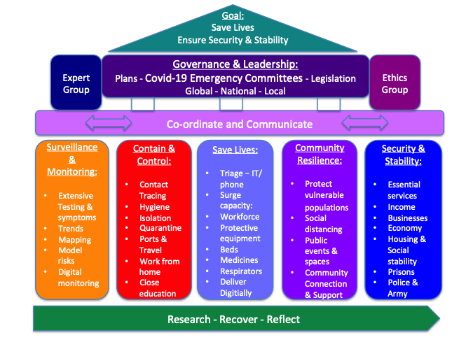 Many of these early lessons from China have been used to inform and illustrate the framework, which provides a series of lessons from China to share with the wider world. The main purpose is to inform national, multilateral and global responses — to address the COVID-19 pandemic now, with a view to enhancing coordinated global, regional and national responses. The framework outlined below provides a comprehensive multi-sector response that can potentially be adapted for national and multilateral planning processes.