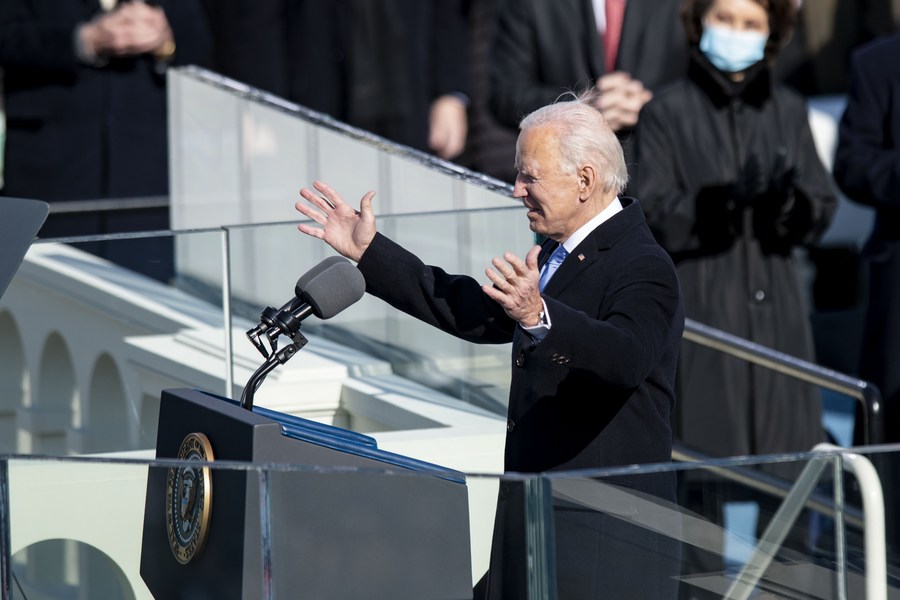 U.S. President Joe Biden delivered his inaugural address after he was sworn in as the 46th president of the United States in Washington, D.C., the United States, on Jan. 20, 2021. (Photo/Xinhua)