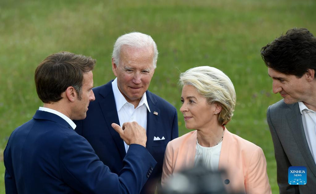 (From L to R) French President Emmanuel Macron, U.S. President Joe Biden, European Commission President Ursula von der Leyen and Canadian Prime Minister Justin Trudeau are pictured during the Group of Seven (G7) Summit in Schloss Elmau in south Germany’s Bavarian Alps on Jun. 26, 2022. (Photo/Xinhua)