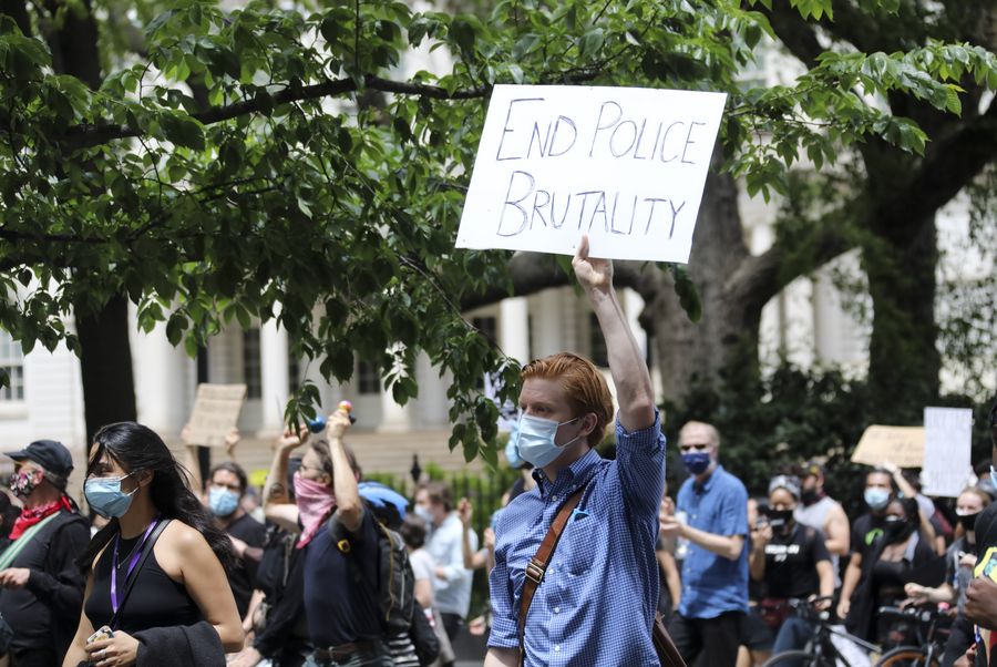 Demonstrators protest over the death of George Floyd in New York, the United States, June 2, 2020. (Photo/Xinhua)