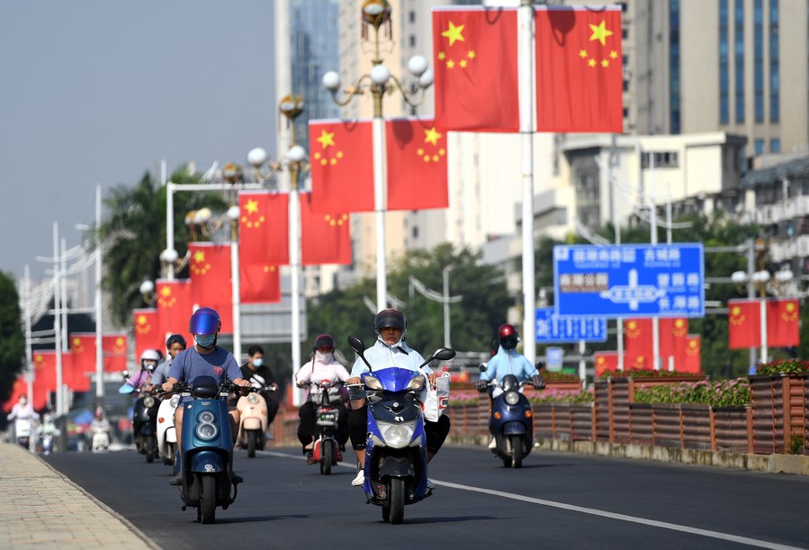People ride on the Nanhu Bridge in Nanning, south China’s Guangxi Zhuang Autonomous Region, Sept. 29, 2021. (Photo/Xinhua)