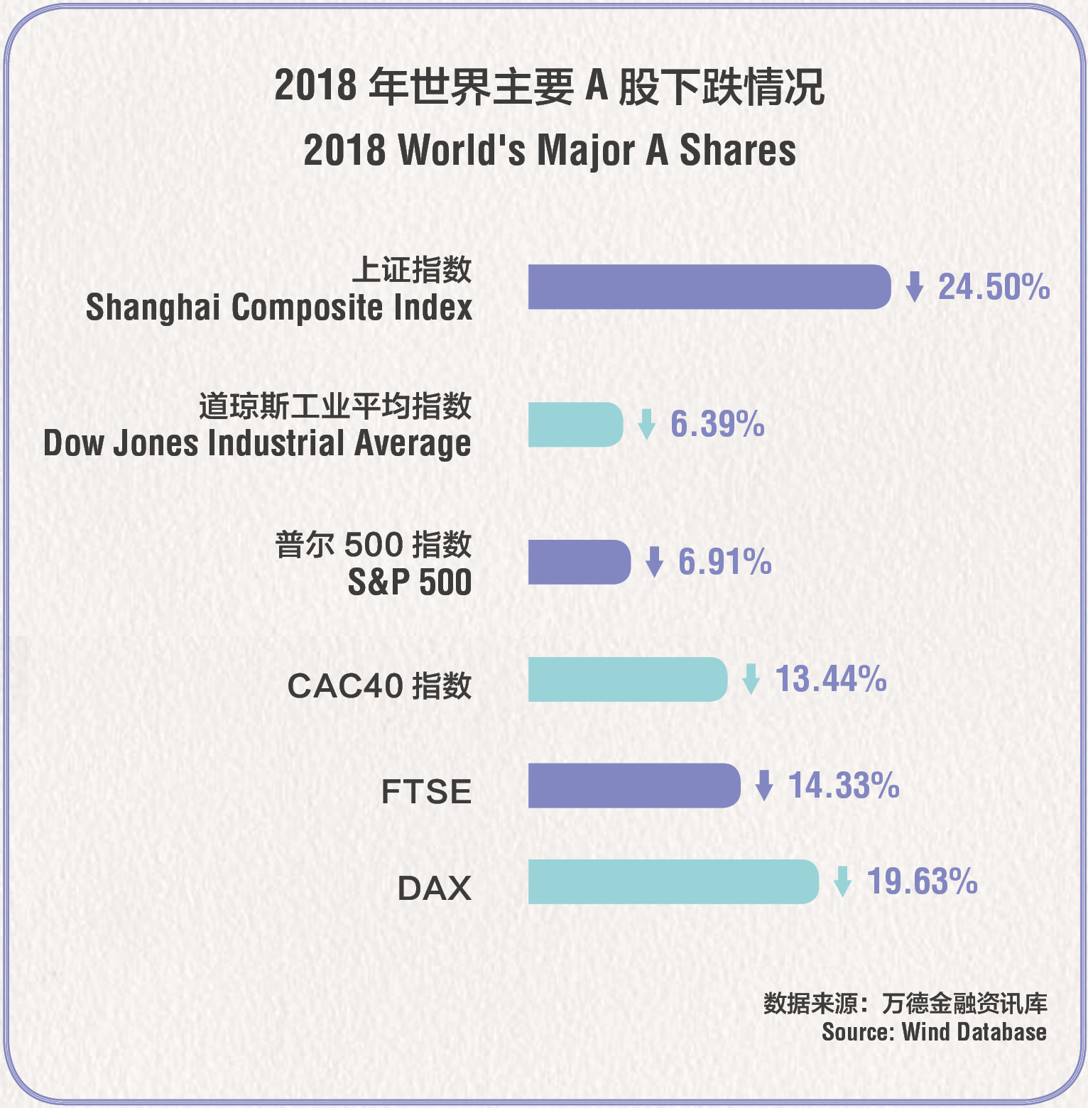 A share had the worst performance in 2018 among the major world stock markets, with a fall in the Shanghai Stock Exchange Composite Index of 24.50 percent, compared to other falls including the Dow Jones by 6.39 percent, the S&P 500 by 6.91 percent, CAC 40 by 13.44 percent, the FTSE by 14.33 percent, and the DAX by 19.63 percent. The poor performance, while not necessarily a barometer of the Chinese economy, has shown the lack of market confidence in the face of domestic uncertainties and external deterioration brought about by U.S. President Donald Trump’s trade war and its worldwide consequences.